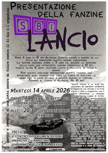 Presentazione della fanzine “Sbilancio”, parole e immagini della lotta ancora da finire contro il 41 bis e l’ergastolo presso il Centro di documentazione anarchico l’Arrotino (Lecco, 14 aprile 2026)