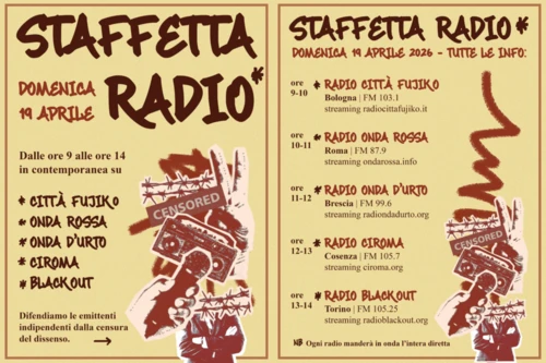 CONTRO LA CENSURA DEL DISSENSO STAFFETTA RADIO SU ONDA ROSSA, ONDA D’URTO, BLACKOUT, CITTÀ FUJIKO E CIROMA