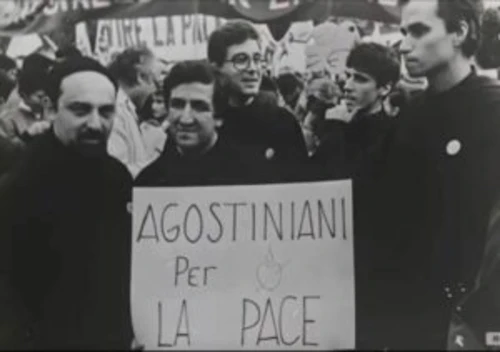 Questa e un’altra fotografia che testimoniano la sua partecipazione a una manifestazione pacifista era stata mostrata il giorno dopo l’elezione del pontefice dal priore della Basilica di Santo Spirito a Firenze, Giuseppe Pagano, che al Pontificium Institutum Patristicum Augustinianum (Collegio Internazionale “Santa Monica”) di Roma era stato compagno di studi del futuro papa e per l’occasione veniva intervistato dalla redazione toscana della RAI.