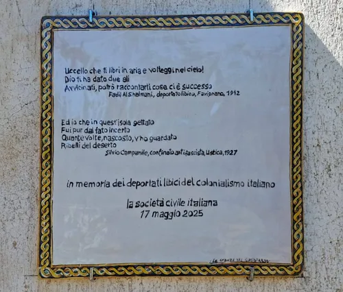 - Tracce coloniali: il viaggio a Ustica di un folto gruppo di realtà della società civile italiana, per rendere omaggio agli oppositori libici alla colonizzazione italiana deportati nelle piccole isole. Pochi giorni fa la visita al cosiddetto “Cimitero degli arabi” per ricordare una storia, ancora oggi sconosciuta, iniziata nel 1911 quando, dopo la sconfitta di Shara Shatt, in Libia, l’occupante italiano rispose con una “caccia all’arabo” e l’esecuzione sommaria di migliaia di persone. Altre, forse 4000, furono frettolosamente imbarcate senza processo per Favignana, le Tremiti, Gaeta e soprattutto Ustica. Le deportazioni continuarono negli anni seguenti, senza soluzione di continuità tra l’Italia “liberale” e quella fascista, fino ad almeno il 1934.