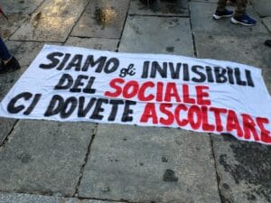 Presente il gruppo Educatori e Oss auto-organizzati di Torino e Provincia, per ribadire che i lavoratori hanno il diritto di sedersi ai tavoli con Enti e Centrali Cooperative per l’organizzazione dei servizi. I lavoratori ribadiscono di non voler più accettare di compensare il definanziamento in atto, aumentando il carico di lavoro. Rifiutano inoltre la strisciante privatizzazione, che va ad intaccare la qualità di servizi che devono rimanere pubblici, sia come titolarità sia come logica gestionale.