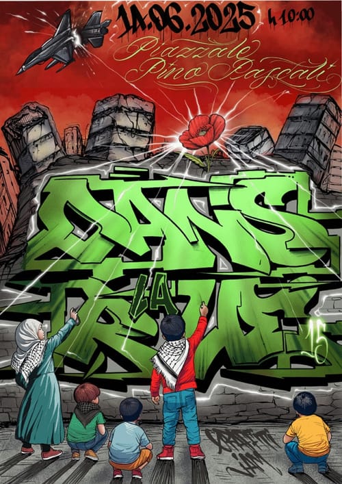 Viviamo in un presente in cui ogni servizio minimo è tagliato per finanziare le spese belliche, in cui i quartieri popolari vengono militarizzati sotto il controllo della polizia, e in cui il razzismo fomenta una guerra fra poveri. Chi prova ad opporsi a tutto ciò viene punito, arrestato e represso tramite leggi speciali liberticide, come il ddl sicurezza. Contemporaneamente, nei paesi del “sud” del mondo, i conflitti armati aumentano sempre più, assumendo le dimensioni di un nuovo conflitto globale. Di fronte a tutto questo, a 80 anni di distanza da quel 1945, è fondamentale tornare all’esempio della resistenza. Quello che ci ha insegnato la lotta partigiana, è che il fascismo si combatte strada per strada, muro per muro, giorno per giorno. In questi anni abbiamo cercato di dare voce alle lotte e alle resistenze che accadevano intorno a noi, nelle metropoli in cui abitiamo come in luoghi lontani da noi, da Roma alla val Susa, dal Chiapas alla Palestina. Lo abbiamo fatto utilizzando lo strumento che ci è più vicino: quello dei graffiti. Uno strumento che non è neutro e che con un semplice tratto di vernice spray porta con sé una visione del mondo. Se i graffiti ci parlano ancora oggi, e continuano a esistere in tutto il mondo nonostante la loro criminalizzazione e repressione, è perché restano lo strumento più libero per farsi strada nel presente, la voce di chi non ha voce. Desacralizzare lo spazio intoccabile di un muro bianco ha un valore immenso, vuol dire riprendersi un pezzetto del discorso pubblico in una società che punta a neutralizzare e omogeneizzare ogni critica al potere. Vuol dire resistere a un fascismo che non è finito e che continua a diffondere le sue politiche d’odio. I graffiti sono un gesto rivoluzionario. Lo ripetiamo da 15 anni e continueremo ancora per molto.