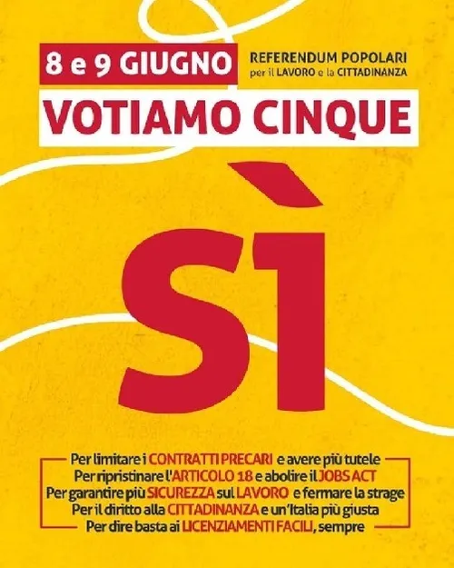 Domenica 8 e lunedì 9 giugno, prima o dopo il bagno a mare, votiamo cinque volte SI'...