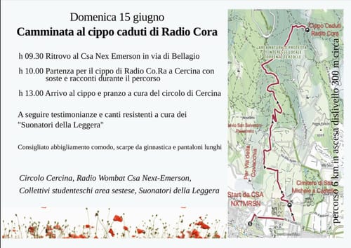 Domenica 15/06 – camminata al cippo caduti di Radio Co.Ra.