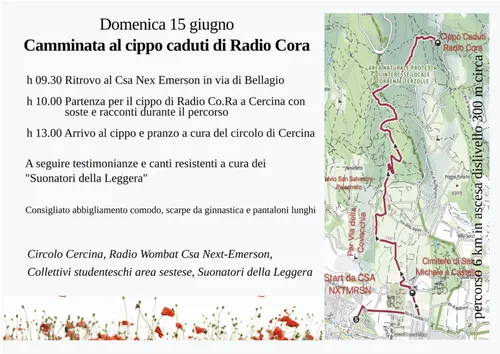 >> h 10.00 Partenza per il cippo di Radio Co.ra. a Cercina con soste e racconti durante il percorso