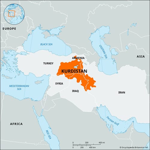 Mappa: Encyclopedia BritannicaCiononostante, la questione curda non poté essere risolta. La Turchia, membro del Patto Atlantico, e il suo apparato militare riuscirono ad avere la meglio grazie al sostegno internazionale della NATO. Furono fatte tutte le possibili concessioni di natura politica, economica e geostrategica. In cambio, la lotta di resistenza del PKK fu criminalizzata in molti paesi e demonizzata, venendo inserita nell’elenco delle organizzazioni terroristiche (negli Stati Uniti e in 2002 nell’UE). La comunità internazionale vedeva il PKK esclusivamente attraverso la lente del nazionalismo turco. La verità veniva distorta, irriconoscibile, da un’agitazione sistematica e da una propaganda anti-terrorismo nei media e nella politica, le vittime venivano trasformate in carnefici e i carnefici in vittime.