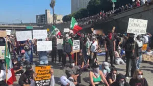 Le proteste sono scoppiate dopo una serie di raid dell’Immigration and Customs Enforcement (ICE), in particolare nel distretto di Paramount, dove sono stati arrestati molti migranti. Gli agenti federali hanno fatto irruzione in abitazioni e luoghi di lavoro, provocando paura e panico tra la popolazione. L’area è a forte presenza latinoamericana: nelle proteste in corso a Los Angeles contro i raid dell’ICE spiccano infatti tra la folla numerose bandiere messicane. Il New York Times le ha definite «un simbolo» delle manifestazioni. Molti dei partecipanti sono cittadini statunitensi di origine messicana — 26,6 milioni secondo il Pew Research Center — che rivendicano con orgoglio le proprie radici.