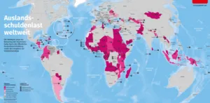 Nei prossimi tre anni, i 47 Paesi molto indebitati dovranno pagare in media almeno il 15% delle loro entrate statali ai creditori esteri per interessi e rimborsi. Questo limita enormemente il loro margine di manovra in termini di politica fiscale. La crisi del debito globale sta portando a massicce violazioni dei diritti umani e al mancato raggiungimento degli Obiettivi di Sviluppo Sostenibile (SDGs).