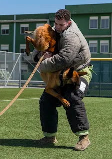 “Focus dell’addestramento è il servizio di pattugliamento con il lavoro di morditura”, spiega senza troppi giri di parole un secondo marine di Sigonella. “I gestori iniziano ogni cane con comandi e movimenti di obbedienza, premiandoli con i loro giocattoli quando si comportano correttamente, e poi si passa all’addestramento giornaliero al pattugliamento. Gli addetti approfittano dell’accensione degli irrigatori per testare le capacità dei cani di ignorare le distrazioni causate da essi durante l’inseguimento di un ricercato. Utilizziamo fattori ambientali che normalmente non vedono per testare il loro impegno nel perseguire un sospettato. Li facciamo correre verso il campo per mordere l’esca attraverso un flusso di acqua corrente, avvicinandoli progressivamente alla sorgente dell’acqua per vedere se essa o la sua pressione influenzano il loro impulso a mordere”.