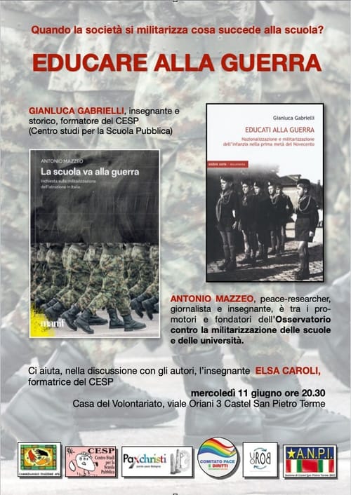 Castel S. Pietro Terme (#Bologna), mercoledì 11 giugno, ore 20,30 #Educare alla #Guerra. Quando la società si militarizza cosa succede alla #scuola.