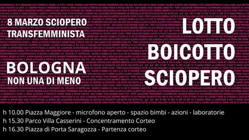 CampiAperti - Saturday, March 8, 2025Corteo con concentramento dai giardini di Villa cassini alle ore 15.30 e partenza alle 16.30 Il percorso: Giardini di villa Casserini – porta Saragozza – Viale Carlo Pepoli – Via Sant’Isaia – Piazza Malpighi – Via Marconi – via Amendola – Viale Petromarella – Via Matteotti – Piazza Dell’Unità Scioperare l’8 marzo significa dire usare […]
