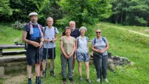 Un ombreggiato e fresco bosco caratterizzato dalla presenza di faggi, castagni, roveri, aceri, abeti e larici, ha protetto dalla calura di questi giorni i nostri viandanti rendendo ancora una volta la passeggiata piacevole.