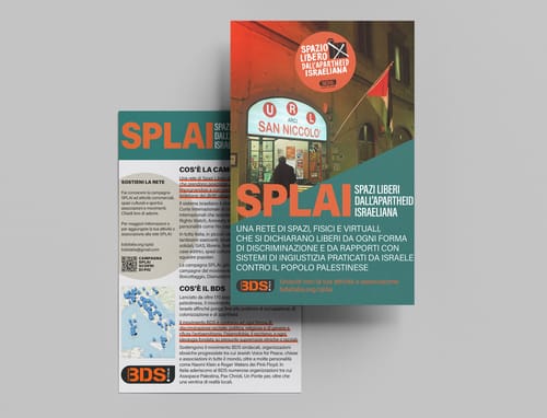 Prendendo ispirazione dalla lotta contro l’apartheid in Sudafrica, la campagna Splai – nata nel solco del Bds Movement internazionale – è attiva in diversi paesi del mondo, tra cui Belgio, Norvegia, Spagna, Gran Bretagna, Grecia, Finlandia, Usa, Brasile, Cile, Argentina, Australia, Marocco e Italia, dove è partita nel giugno 2019.