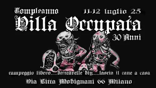 11 e 12 LUGLIO 2025COMPLEANNO VILLA OCCUPATA Villa Vegan KERMESSE IRRAZIONALE DI SQUATTISMO MUSICALE con: HOBOS / HUMAN BEHAVIOUR / RAGS / BONZOS CIRCUS / ANARCHIA FUTURA / VIVERE MERDA / KALASHNIKOV COLLECTIVE / FRAMMENTI / GUASTAFESTE VENERDÌ 11 LUGLIO // w/ HOBOS HUMAN BEHAVIOURRAGS BONZOS CIRCUSANARCHIA FUTURA + DJ SPECIALISSIMO EUROTRASH CORE BY DJ MARCEL […]
