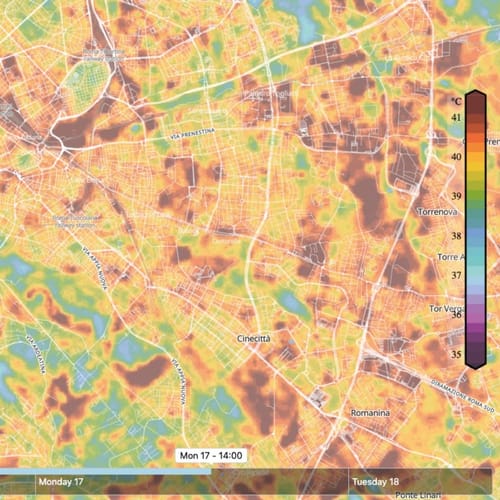 La vedete quella macchia azzurra in mezzo a macchie gialle, arancioni, rosse? Quella macchia è il Pratone di Torre Spaccata ed è l’unica azzurra tra la riserva dell’Aniene e il parco dell’Appia antica. L’azzurro indica una temperatura più bassa di circa 4°C rispetto alle macchie rosso scuro, che spesso coincidono con aree industriali che invece “bruciano” (nel nostro quadrante: ex caserme Piccinini, l’area militare, gli studios di cinecittà, l’ex stazione casilina…). La parte più azzurra del Pratone è la più selvatica: è quella dei canneti, dei cespugli e dei rovi, le cui radici trattengono l’umidità, è quella del fosso che un tempo scorreva e che ha reso il terreno argilloso e limoso e capace di trattenere acqua e abbassare le temperature. Cos’altro serve per capire l’importanza di questi 58 ettari ancora selvatici e non edificati? Che cosa serve alla politica per intervenire a tutela di questo ecosistema unico, per smettere di avallare consumo di suolo e nuovo cemento? Anche in questa torrida estate, il pratone R-Esiste, e continuerà a resistere.