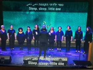 La conduzione della serata, come sempre in arabo ed ebraico con sottotitoli in entrambe le lingue (oltre che in inglese) è stata condivisa tra Fida Shehadeh e Shira Geffen, entrambe ben note nel mondo dell’attivismo israelo-palestinese: la prima impegnata nel movimento “Hutwa Group” che si oppone all’esproprio e demolizione delle case, sempre più frequenti anche in Israele, la seconda attrice e scrittrice dichiaratamente pacifista.
