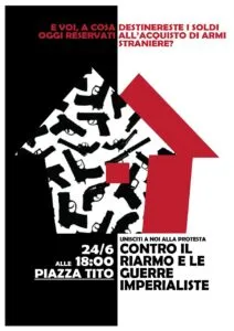 Scenderemo in piazza con determinazione per gridare il nostro NO alla politica imperialista e rivendicare la Pace, giusta e duratura, fondata sulla democrazia e la solidarietà internazionale. II 24 giugno Europa Verde raccoglie l’invito degli attivisti sloveni e manifesta a Capodistria contro l’arricchimento delle classi dominanti, costruito sui cadaveri della classe lavoratrice !