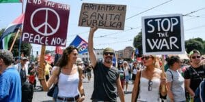 Organizzare l’opposizione alla guerra, imporre la sua fine, fermare il genocidio, vuol dire per noi oggi rifiutare ogni arruolamento nei suoi fronti, valorizzando le lotte attuali e attivandone altre più potenti, trovando così parole condivise per produrre iniziativa. Non ci serve infatti richiamare parole d’ordine abusate, insufficienti quando non controproducenti, ma costruire un discorso e una pratica condivisi capaci di fare i conti con le differenze tra soggetti organizzati, condizioni sociali e geografiche.