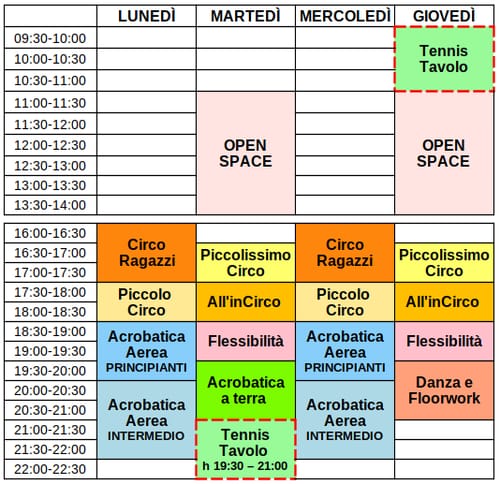 Per tutta la settimana, con lo stesso orario dei corsi