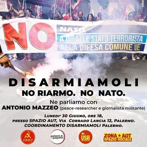 #Palermo, lunedì 30 giugno, ore 18 - DISARMIAMOLI. - NO RIARMO. NO #NATO. #norearm