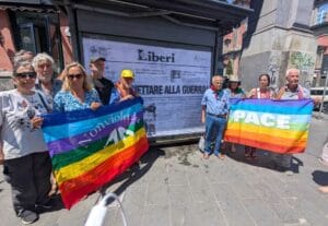 Grazie alla preziosa collaborazione con “Liberi Edizioni”, questa informazione e sensibilizzazione civica su una scelta fondamentale per opporsi concretamente alla guerra ed al militarismo ha assunto anche la forma d’un manifesto-giornale, che è stato affisso sull’edicola antistante al Museo Archeologico Nazionale di Napoli, angolo via Costantinopoli, dove gli attivisti del Comitato hanno incontrato cittadini e giornalisti, spiegando motivi e finalità di questa campagna antimilitarista.
