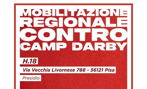 Contropiano - Friday, July 4, 2025MOBILITAZIONE REGIONALE CONTRO LA BASE USA DI CAMP DARBY 13 LUGLIO 2025. 18 PRESIDIO ALL’INGRESSO DELLA BASE, Via Vecchia Livornese 788 Pisa Dai presidi di Pisa e Firenze di Lunedì 23 giugno, convocati in tutta Italia dopo gli attacchi degli USA all’Iran e l’assemblea a Pisa del 1 luglio come […]