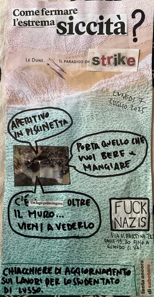 Ci vediamo a Strike, lunedì 7 luglio dalle 19.30, per parlare di cosa succede, per pensare e realizzare una città diversa. Porta il costume da bagno, porta quello che vuoi bere e mangiare