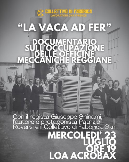 La Vaca al Fer documenta la storia della lotta degli operai delle officine meccaniche Reggiane culminata nel 1950 con l’occupazione della fabbrica durata oltre un anno. Il conflitto nasce dall’esigenza di impedire che il necessario abbandono della produzione bellica dopo la fine della seconda guerra mondiale si traduca in vendite speculative e conseguenti licenziamenti. Durante un intero anno di occupazione gli operai sono accompagnati dalla loro comunità territoriale contadina, partigiana, ribelle. Il sapere operaio immagina, e poi materialmente costruisce, i primi prototipi di una produzione industriale con impatto benefico per il territorio circostante e i bisogni delle persone che lo abitano.