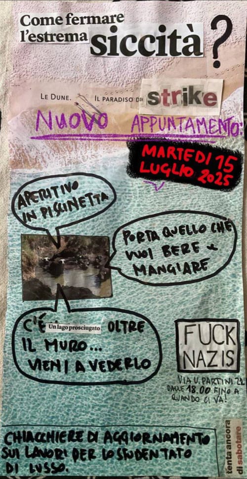 Ci vediamo a Strike, lunedì 15 luglio dalle 18, per parlare di cosa succede, per pensare e realizzare una città diversa. Porta il costume da bagno, porta quello che vuoi bere e mangiare