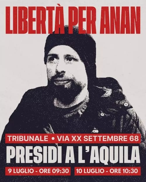 Radio Onda Rossa - Wednesday, July 9, 2025Oggi, mercoledì 9 luglio, ennesima udienza per Anan, Ali e Mansour, e come sempre presidio solidale fuori dal tribunale dell'Aquila.