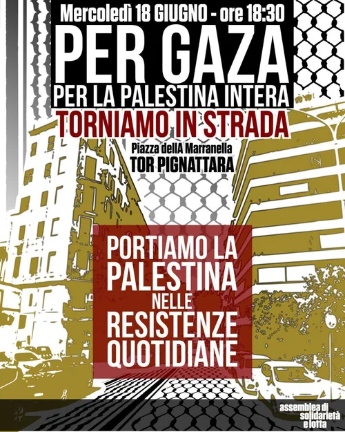 Radio Onda Rossa - Wednesday, June 18, 2025Oggi 18\06\2025 a Torpignattara ci saranno due manifestazioni che confluiranno poi insieme. Il primo appuntamento è alle h18.30 a Piazza della Marranella (RM), il secondo alle h 19.30 a Largo Preneste (RM).