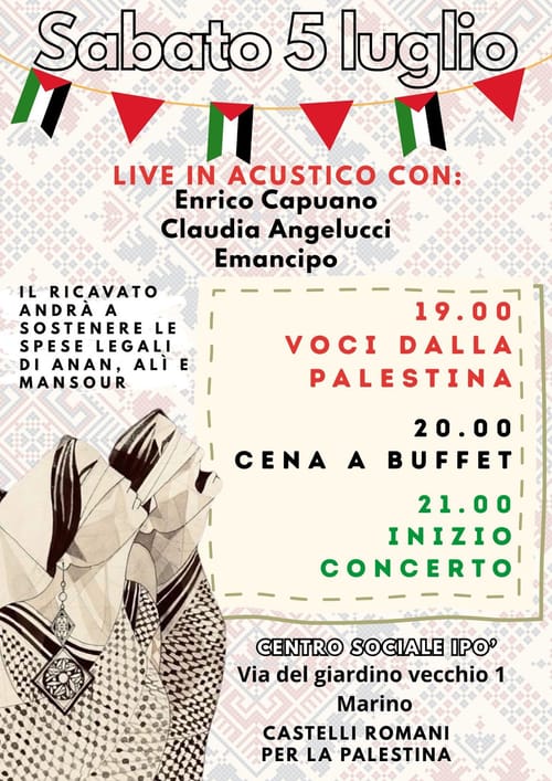 Evento per le spese legali di di Anan, Ali e Mansour: concerto di Enrico Capuano, Claudia Angelucci, Emancipo