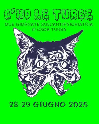 Radio Onda Rossa - Friday, June 27, 2025Due giornate, sabato 28\06 e domenica 29\06, dedicate al tema dell'antipsichaitria; il Csoa Turba di Perugia ha organizzato dibattiti, proiezioni, cene e concerti. Al telefono due compagne ci hanno raccontato nel dettaglio i programmi, la storia del centro sociale e invitano tutt* a partecipare. A seguire abbiamo sentito un compagno del collettivo Antonin Artaud, collettivo pisano antipsichiatrico che interverrà nel confronto di Sabato, che ci resocontava sull’ultima udienza del processo sui maltrattamenti alla Stella Maris avvenuta martedì 24 giugno 2025. In questa udienza sono state richieste, da parte del pubblico ministero, le condanne fino a cinque anni.