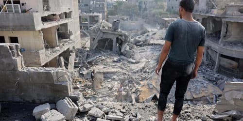 Un palestinese fissa le macerie della casa della famiglia Alloush, rasa al suolo da un attacco israeliano a Jabalia, nella Striscia di Gaza settentrionale, il 10 novembre 2024. L’esercito israeliano sta conducendo un’offensiva aerea e terrestre su vasta scala nel nord di Gaza dal 6 ottobre 2024, in particolare intorno a Jabalia, Beit Lahia e Beit Hanoun, con l’obiettivo dichiarato di impedire la riorganizzazione di Hamas. (Foto di Omar AL-QATTAA / AFP)Bruxelles – Secondo un’esclusiva del Guardian, MBDA, il più grande produttore di missili d’Europa, vende componenti chiave per bombe che sono state spedite a migliaia in Israele e utilizzate in numerosi attacchi aerei che hanno ucciso bambini palestinesi e altri civili, secondo una recente ricerca. Questa azienda europea fa parte di un gruppo che comprende la più grande azienda britannica nel settore della difesa, BAE Systems, la francese Airbus e l’italiana Leonardo.