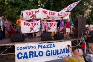 A seguire gli interventi di Rete Kurdistan, Mamme in piazza per la libertà di dissenso di Torino, Mamme per Roma Città Aperta, Associazione Culturale Liguria Palestina, Osservatorio Repressione, Amnesty Liguria e particolarmente applaudito l’appassionato contributo di Nicoletta Dosio circondata dai compagni e dalle bandiere del Movimento NoTav. “La nostra partecipazione a quei giorni del G8, insieme al variegato mondo del Movimento NoGlobal, segnava non certo la nascita del nostro movimento, perché già da anni eravamo consapevoli delle conseguenze devastanti della “grande opera”, e quindi in lotta; ma in un certo senso quella era la prima volta che ci presentavamo con le nostre bandiere, con il nostro logo che era nato da poco… (…) E oggi a distanza di anni siamo qui per dirvi che non possiamo arrenderci, che tutte e tutti dobbiamo ritrovare fiducia nelle ragioni della nostra lotta.”