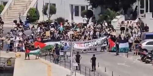 Contropiano - Tuesday, July 22, 2025La MS Crown Iris, nave da crociera della compagnia israeliana Mano Maritime, ha attraccato martedì 22 luglio sull’isola greca di Syros, ma i suoi passeggeri non sono potuti sbarcare. Circa 300 manifestanti sul molo hanno infatti impedito ai turisti sionisti di mettere piede a terra, sventolando bandiere palestinesi e condannando […]