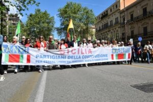 Pressenza - Saturday, April 26, 2025Più di cinquemila in corteo quest’anno a Palermo, forse quasi il doppio, e il bandierone della Palestina sciorinato sulla scalinata del Teatro Massimo per la prima volta!