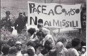 Per quanto riguarda la prassi delle pacifiste femministe, vorrei qui ricordare due avvenimenti cruciali che hanno segnato un passaggio importante sia per quanto riguarda la protesta femminista ma anche per i movimenti in generale. Si tratta dei campi di pace a Greenham Common in Inghilterra e a Comiso nella Sicilia orientale dove le donne hanno circondato le due basi militari per impedire l’installazione dei missili Pershing e Cruise.