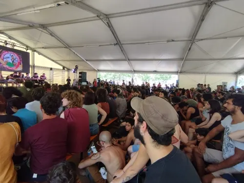 Davanti a una platea di oltre 300 persone, riunitasi sotto il tendone dei dibattiti, si è svolta dunque una lunga assemblea nazionale contro guerra e riarmo, ospitata dal Movimento valsusino e che ha visto la partecipazione di decine tra collettivi, realtà, sindacati di base e partiti.