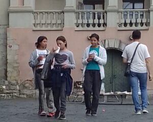 Una ragazza entra e si siede con aria serena. Ho un’idea e le porgo il cellulare, ovviamente con la traduzione in ucraino: “Sono un reporter italiano di un’agenzia stampa internazionale che si chiama Pressenza. Vorrebbe scrivere una frase su come vede la situazione attuale in Ucraina – guerra, crisi economica, corruzione… ?”